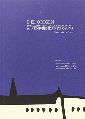 Hace ya casi un siglo y medio que don Manuel Merry y Colón, siendo director y catedrático en el Instituto de Segunda Enseñanza de Osuna, decidió publicar un trabajo sobre la antigua y suprimida Universidad ursaonense. Era el enésimo intento de vindicar el valor de aquella institución y una manera de reclamar que se rehabilitase nuevamente. Su título, Del origen, fundación, privilegios y excelencias de la Universidad de Osuna, tiene un par de subtítulos más que adelantan el tenor de la obra. El libro se publicó a sus expensas y el producto de la venta de su escasa tirada quiso el autor destinarlo a reparaciones y dotación del Instituto que usaba el viejo recinto universitario. Es hoy un raro bibliográfico. Tal vez por ello sea de interés su rescate del olvido y quizás la pieza que deba dar comienzo a la recuperación de lo que se ha escrito sobre la Universidad de Osuna, una institución que, a pesar de lo mucho que se ha dado a la estampa, sigue siendo una insigne desconocida.